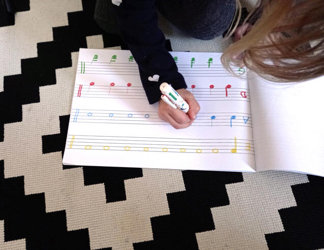 Children get to creat their own rhythm lines.